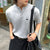 肩寬++! 小鐵片質感直紋亨利領針織TOP[五色]