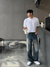 [修長版型] 微寬鬆直紋刷白牛仔褲[一色]