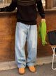 KHAKI GREY刷色洗水復古牛仔褲[一色]