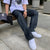ISLAND直紋刷色微寬牛仔褲[一色]